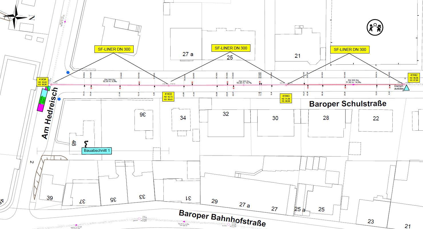 Es werden Kanäle der Durchmesser DN 250 bis DN 300 mit einer Gesamtlänge von 443 m renoviert.